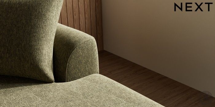 7.0.3 Buy Parker Large Sofa Chaise - Right Hand Cotswold Chenille Dark Green Low Retro Tapered - Light from the Next UK online shop Click here to use our accessible website