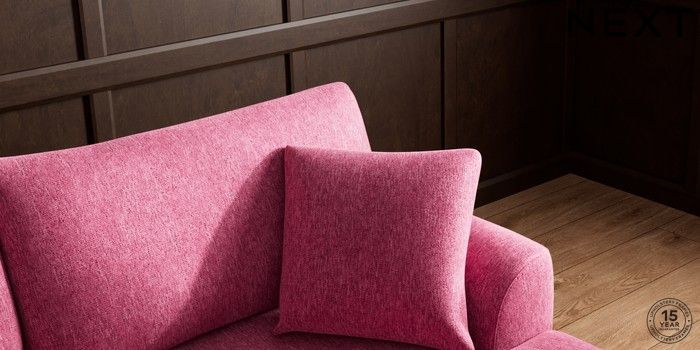7.2.10 Buy Parker Large Sofa Chaise - Right Hand Cotswold Chenille Dark Raspberry Pink Low Retro Tapered - Mid from the Next UK online shop Click here to use our accessible website