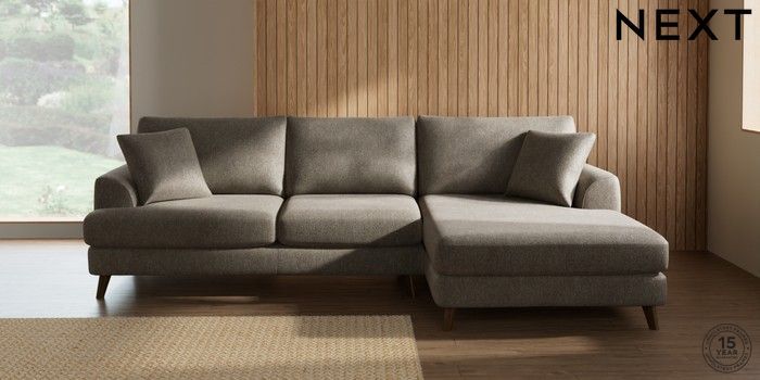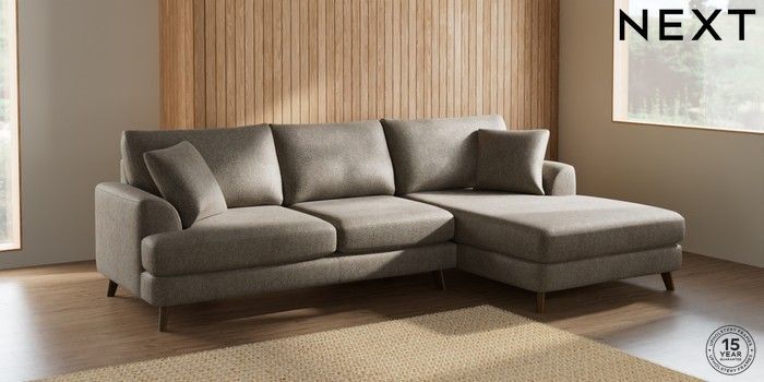 7.0.3 Buy Parker Large Sofa Chaise - Right Hand Cotswold Chenille Mid Mink Brown Low Retro Tapered - Mid from the Next UK online shop Click here to use our accessible website