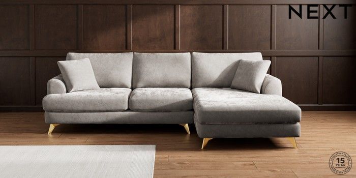 7.3.1 Buy Parker Large Sofa Chaise - Right Hand Distressed Velour French Grey High Metal - Brass from the Next UK online shop Click here to use our accessible website