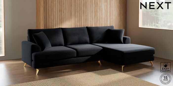 7.2.5 Buy Parker Large Sofa Chaise - Right Hand Fine Chenille Easy Clean Black High Metal - Brass from the Next UK online shop Click here to use our accessible website