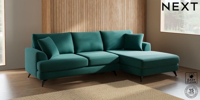 7.2.5 Buy Parker Large Sofa Chaise - Right Hand Fine Chenille Easy Clean Dark Juniper Green High Metal - Black from the Next UK online shop Click here to use our accessible website