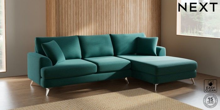 7.2.5 Buy Parker Large Sofa Chaise - Right Hand Fine Chenille Easy Clean Dark Juniper Green High Metal - Chrome from the Next UK online shop Click here to use our accessible website