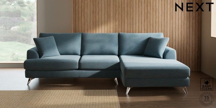 7.2.10 Buy Parker Large Sofa Chaise - Right Hand Fine Chenille Easy Clean Mid Blue High Metal - Chrome from the Next UK online shop Click here to use our accessible website