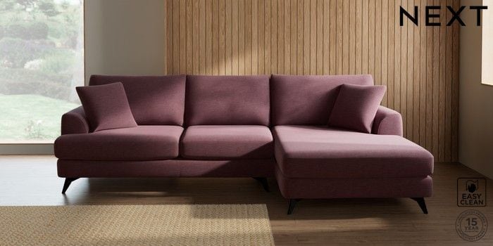 7.3.1 Buy Parker Large Sofa Chaise - Right Hand Fine Chenille Easy Clean Mid Mulberry Purple High Metal - Black from the Next UK online shop Click here to use our accessible website