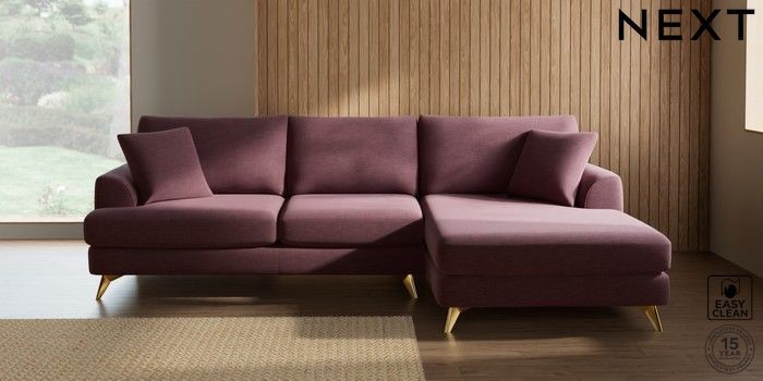 7.3.1 Buy Parker Large Sofa Chaise - Right Hand Fine Chenille Easy Clean Mid Mulberry Purple High Metal - Brass from the Next UK online shop Click here to use our accessible website