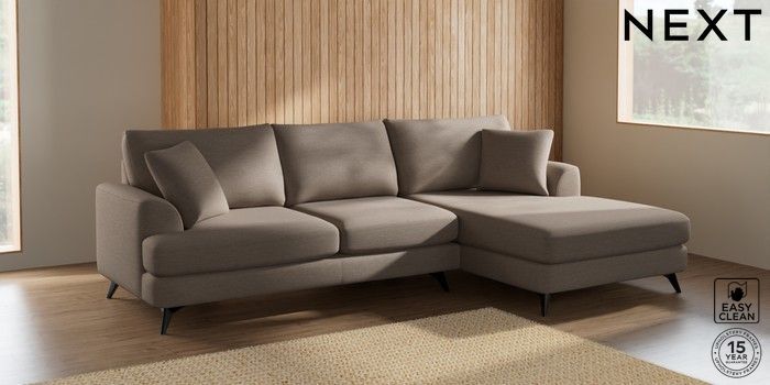 7.2.5 Buy Parker Large Sofa Chaise - Right Hand Fine Chenille Easy Clean Mid Taupe Brown High Metal - Black from the Next UK online shop Click here to use our accessible website