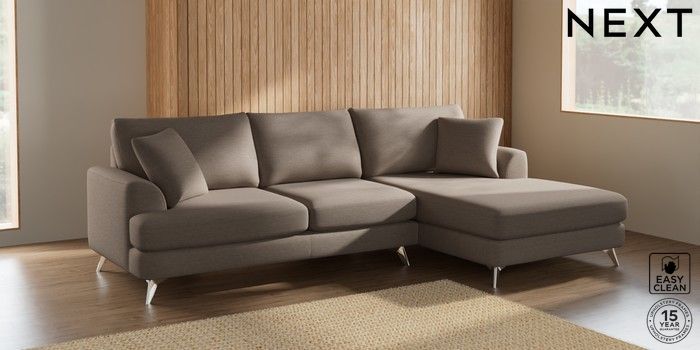 7.2.5 Buy Parker Large Sofa Chaise - Right Hand Fine Chenille Easy Clean Mid Taupe Brown High Metal - Chrome from the Next UK online shop Click here to use our accessible website