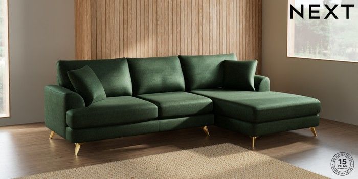 7.2.5 Buy Parker Large Sofa Chaise - Right Hand Luxe Chenille Dark Green High Metal - Brass from the Next UK online shop Click here to use our accessible website