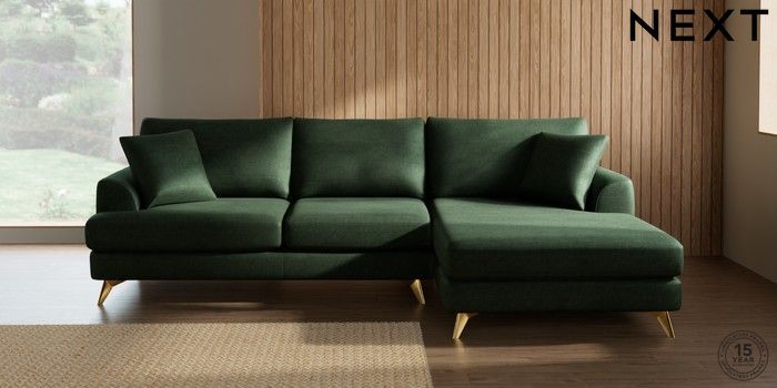 7.3.1 Buy Parker Large Sofa Chaise - Right Hand Luxe Chenille Dark Green High Metal - Brass from the Next UK online shop Click here to use our accessible website