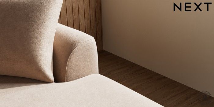 7.2.10 Buy Parker Large Sofa Chaise - Right Hand Luxe Chenille Mid Natural Low Retro Tapered - Mid from the Next UK online shop Click here to use our accessible website