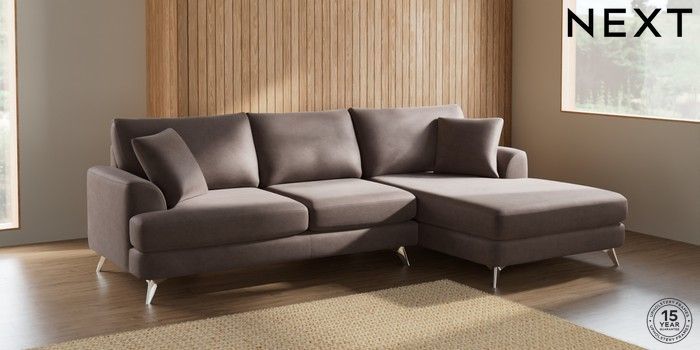 7.2.5 Buy Parker Large Sofa Chaise - Right Hand Luxe Chenille Mink Brown High Metal - Chrome from the Next UK online shop Click here to use our accessible website