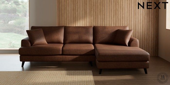 7.3.1 Buy Parker Large Sofa Chaise - Right Hand Monza Faux Leather Easy Clean Chestnut Brown Low Retro Tapered - Dark from the Next UK online shop Click here to use our accessible website