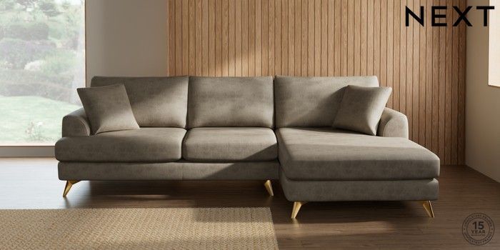 7.3.1 Buy Parker Large Sofa Chaise - Right Hand Monza Faux Leather Easy Clean Mink Brown High Metal - Brass from the Next UK online shop Click here to use our accessible website