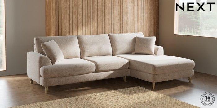 7.2.6 Buy Parker Large Sofa Chaise - Right Hand Multi Weave Mid Natural Low Retro Tapered - Light from the Next UK online shop Click here to use our accessible website