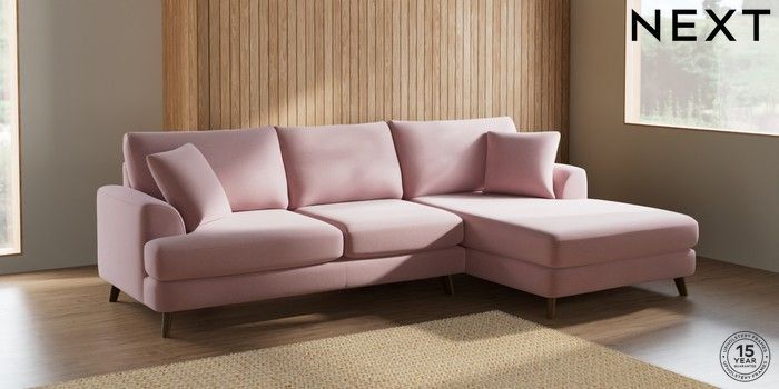 7.2.5 Buy Parker Large Sofa Chaise - Right Hand Natural Mix Light Rose Pink Low Retro Tapered - Mid from the Next UK online shop Click here to use our accessible website