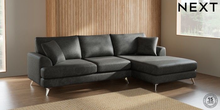 7.2.5 Buy Parker Large Sofa Chaise - Right Hand Plush Chenille Dark Grey High Metal - Chrome from the Next UK online shop Click here to use our accessible website
