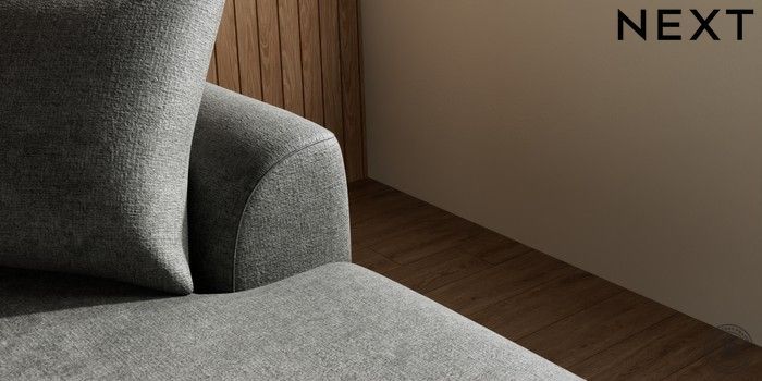 7.2.10 Buy Parker Large Sofa Chaise - Right Hand Plush Chenille Dark Grey Low Retro Tapered - Mid from the Next UK online shop Click here to use our accessible website