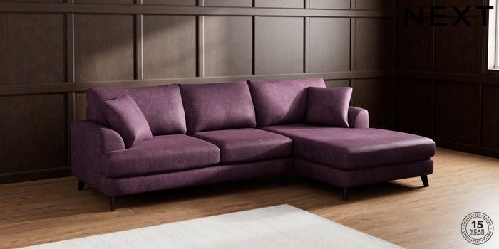 7.2.5 Buy Parker Large Sofa Chaise - Right Hand Plush Chenille Dark Plum Purple Low Retro Tapered - Dark from the Next UK online shop Click here to use our accessible website