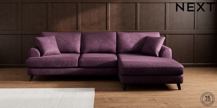 7.3.1 Buy Parker Large Sofa Chaise - Right Hand Plush Chenille Dark Plum Purple Low Retro Tapered - Dark from the Next UK online shop Click here to use our accessible website