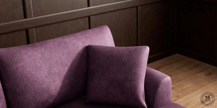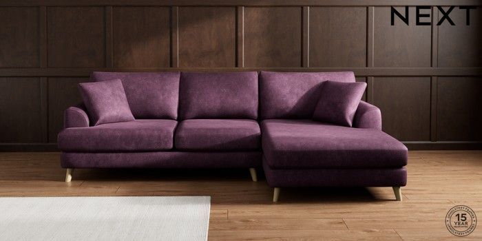 7.2.10 Buy Parker Large Sofa Chaise - Right Hand Plush Chenille Dark Plum Purple Low Retro Tapered - Light from the Next UK online shop Click here to use our accessible website