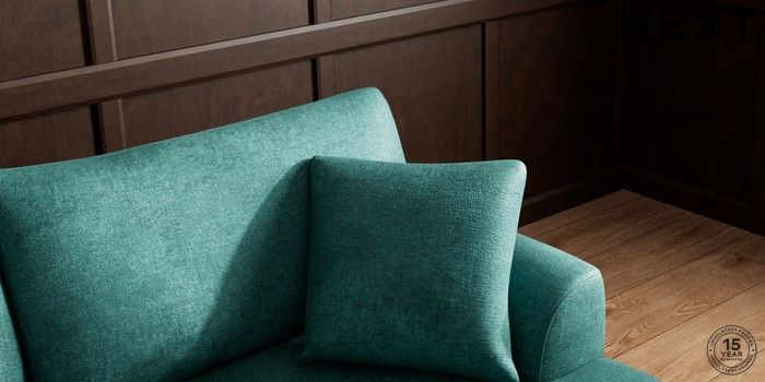 7.3.1 Buy Parker Large Sofa Chaise - Right Hand Plush Chenille Dark Teal Green High Metal - Brass from the Next UK online shop Click here to use our accessible website