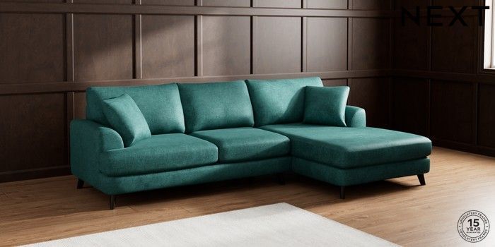 7.2.5 Buy Parker Large Sofa Chaise - Right Hand Plush Chenille Dark Teal Green Low Retro Tapered - Dark from the Next UK online shop Click here to use our accessible website