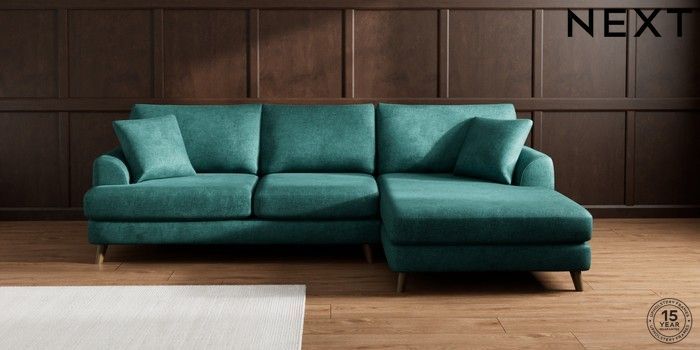 7.3.1 Buy Parker Large Sofa Chaise - Right Hand Plush Chenille Dark Teal Green Low Retro Tapered - Mid from the Next UK online shop Click here to use our accessible website