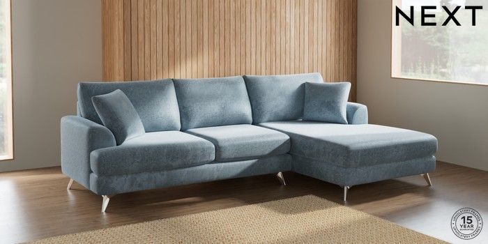 7.2.6 Buy Parker Large Sofa Chaise - Right Hand Plush Chenille Light Blue High Metal - Chrome from the Next UK online shop Click here to use our accessible website