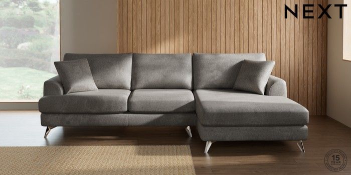 7.2.10 Buy Parker Large Sofa Chaise - Right Hand Plush Chenille Light Grey High Metal - Chrome from the Next UK online shop Click here to use our accessible website