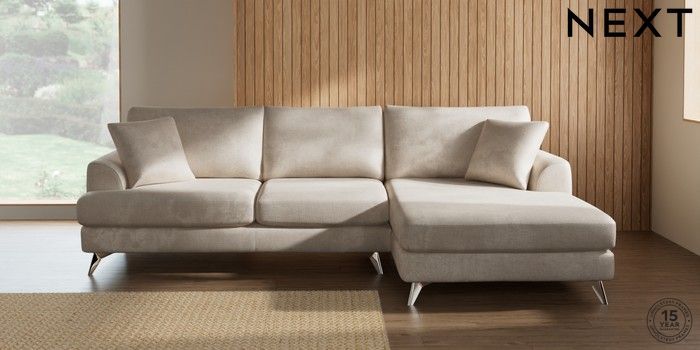7.2.10 Buy Parker Large Sofa Chaise - Right Hand Plush Chenille Oyster High Metal - Chrome from the Next UK online shop Click here to use our accessible website