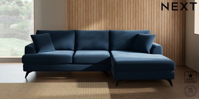 7.3.1 Buy Parker Large Sofa Chaise - Right Hand Plush Velvet Easy Clean Airforce Blue High Metal - Black from the Next UK online shop Click here to use our accessible website