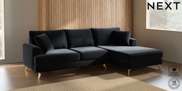 7.2.5 Buy Parker Large Sofa Chaise - Right Hand Plush Velvet Easy Clean Charcoal Grey High Metal - Brass from the Next UK online shop Click here to use our accessible website