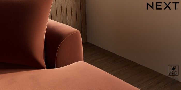 7.3.1 Buy Parker Large Sofa Chaise - Right Hand Plush Velvet Easy Clean Ginger Orange High Metal - Brass from the Next UK online shop Click here to use our accessible website