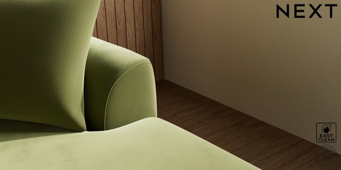 7.3.1 Buy Parker Large Sofa Chaise - Right Hand Plush Velvet Easy Clean Mid Olive Green Low Retro Tapered - Mid from the Next UK online shop Click here to use our accessible website