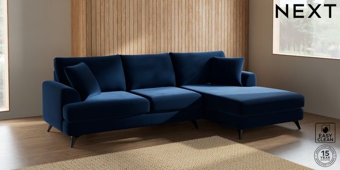 7.2.5 Buy Parker Large Sofa Chaise - Right Hand Plush Velvet Easy Clean Navy Blue High Metal - Black from the Next UK online shop Click here to use our accessible website