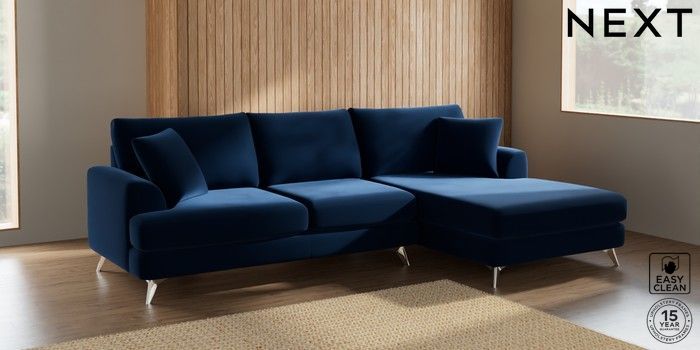 7.2.5 Buy Parker Large Sofa Chaise - Right Hand Plush Velvet Easy Clean Navy Blue High Metal - Chrome from the Next UK online shop Click here to use our accessible website
