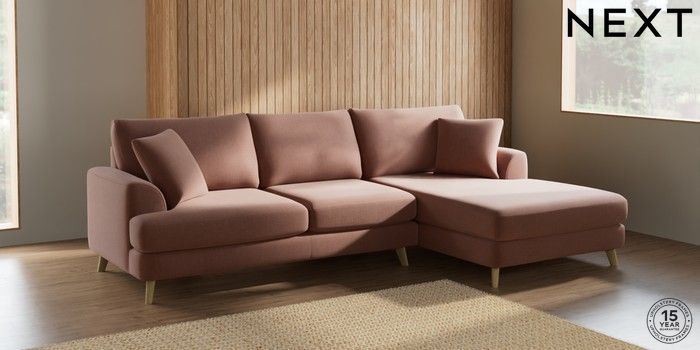7.2.5 Buy Parker Large Sofa Chaise - Right Hand Relaxed Linen Look Light Rust Brown Low Retro Tapered - Light from the Next UK online shop Click here to use our accessible website