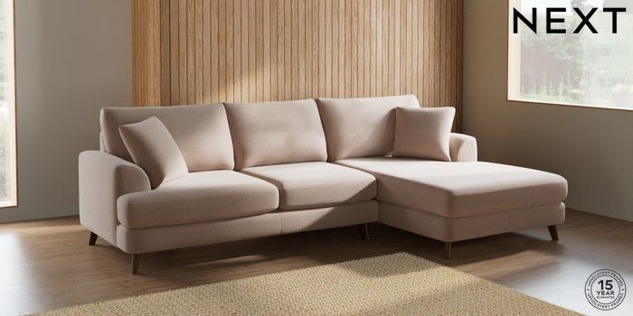7.2.5 Buy Parker Large Sofa Chaise - Right Hand Relaxed Linen Look Mid Natural Low Retro Tapered - Mid from the Next UK online shop Click here to use our accessible website