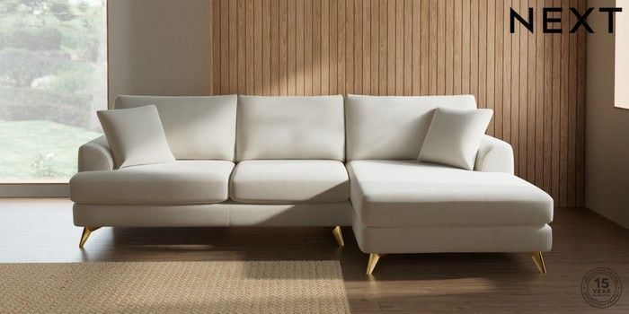 7.3.1 Buy Parker Large Sofa Chaise - Right Hand Relaxed Linen Look Oyster High Metal - Brass from the Next UK online shop Click here to use our accessible website