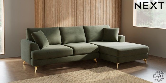7.2.5 Buy Parker Large Sofa Chaise - Right Hand Ripple Chenille Mid Moss Green High Metal - Brass from the Next UK online shop Click here to use our accessible website