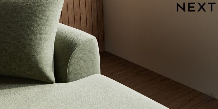 7.3.1 Buy Parker Large Sofa Chaise - Right Hand Ripple Chenille Mid Moss Green High Metal - Brass from the Next UK online shop Click here to use our accessible website
