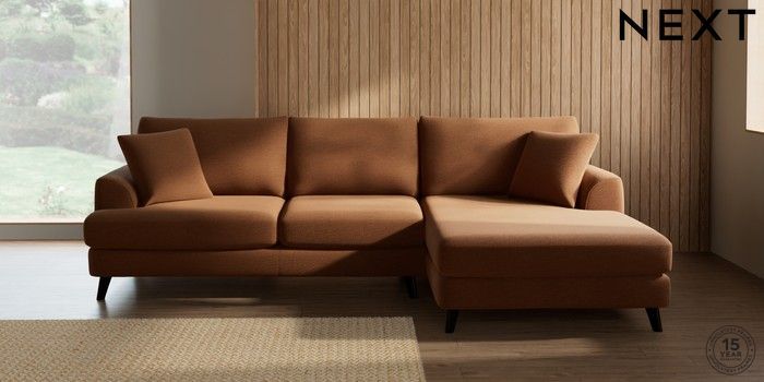 7.2.10 Buy Parker Large Sofa Chaise - Right Hand Ripple Chenille Mid Rust Brown Low Retro Tapered - Dark from the Next UK online shop Click here to use our accessible website