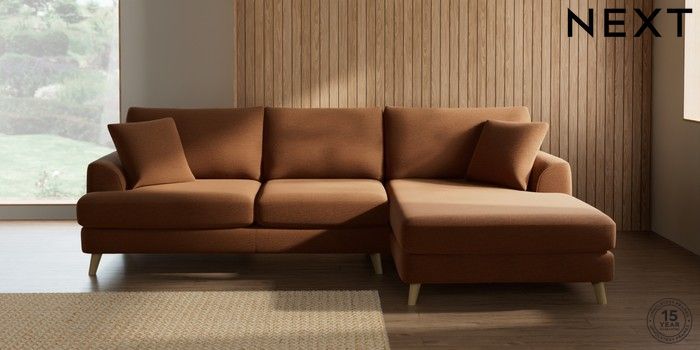 7.2.10 Buy Parker Large Sofa Chaise - Right Hand Ripple Chenille Mid Rust Brown Low Retro Tapered - Light from the Next UK online shop Click here to use our accessible website