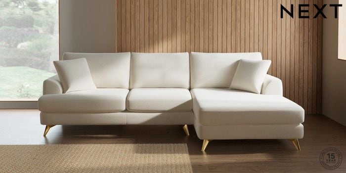 7.3.1 Buy Parker Large Sofa Chaise - Right Hand Ripple Chenille Oyster High Metal - Brass from the Next UK online shop Click here to use our accessible website