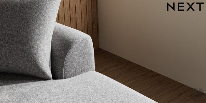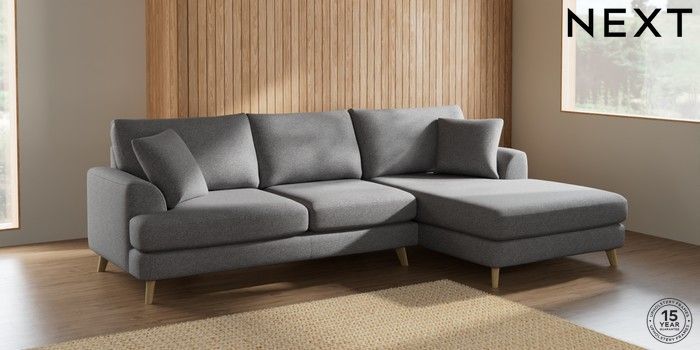 7.2.4 Buy Parker Large Sofa Chaise - Right Hand Studio Chenille Mid Grey Low Retro Tapered - Light from the Next UK online shop Click here to use our accessible website