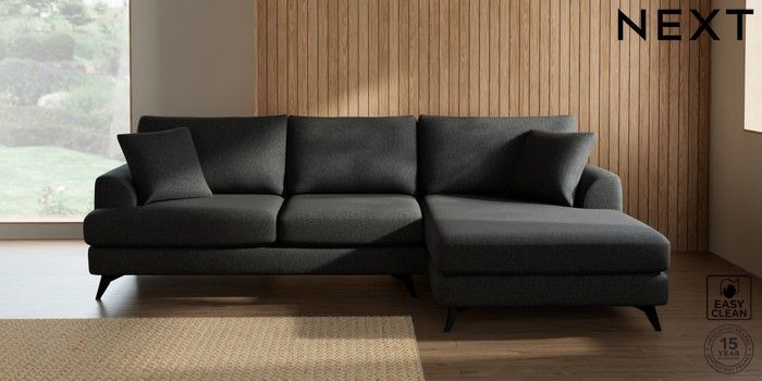 7.3.1 Buy Parker Large Sofa Chaise - Right Hand Tweedy Blend Easy Clean Charcoal Grey High Metal - Black from the Next UK online shop Click here to use our accessible website