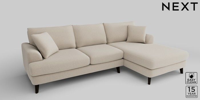 6.12.1 Buy Parker Large Sofa Chaise - Right Hand Tweedy Blend Easy Clean Oyster Low Retro Tapered - Dark from the Next UK online shop Click here to use our accessible website