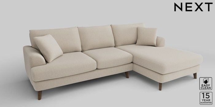 6.12.1 Buy Parker Large Sofa Chaise - Right Hand Tweedy Blend Easy Clean Oyster Low Retro Tapered - Mid from the Next UK online shop Click here to use our accessible website