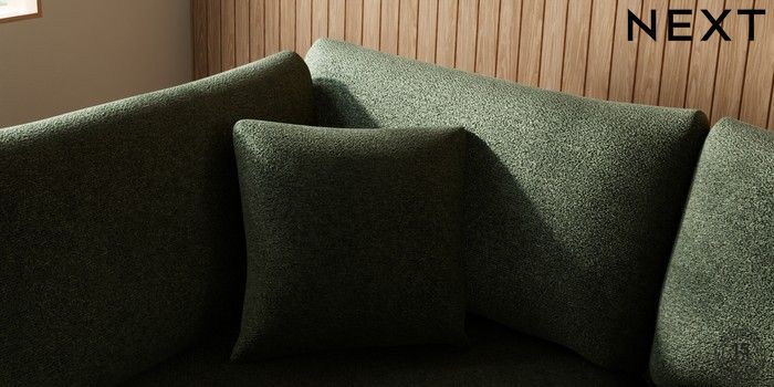 7.2.10 Buy Parker Medium Corner Chaise - Left Hand Boucle Chenille Dark Moss Green High Metal - Chrome from the Next UK online shop Click here to use our accessible website